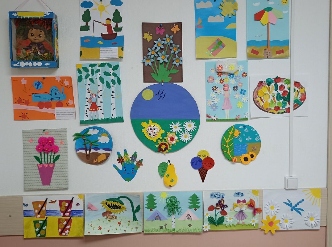 Из аппликаций наших ребят оформлена выставка детских работ. Эта экспозиция стала ярким отражением того, как юные творцы воспринимают самое теплое и любимое время года — лето.