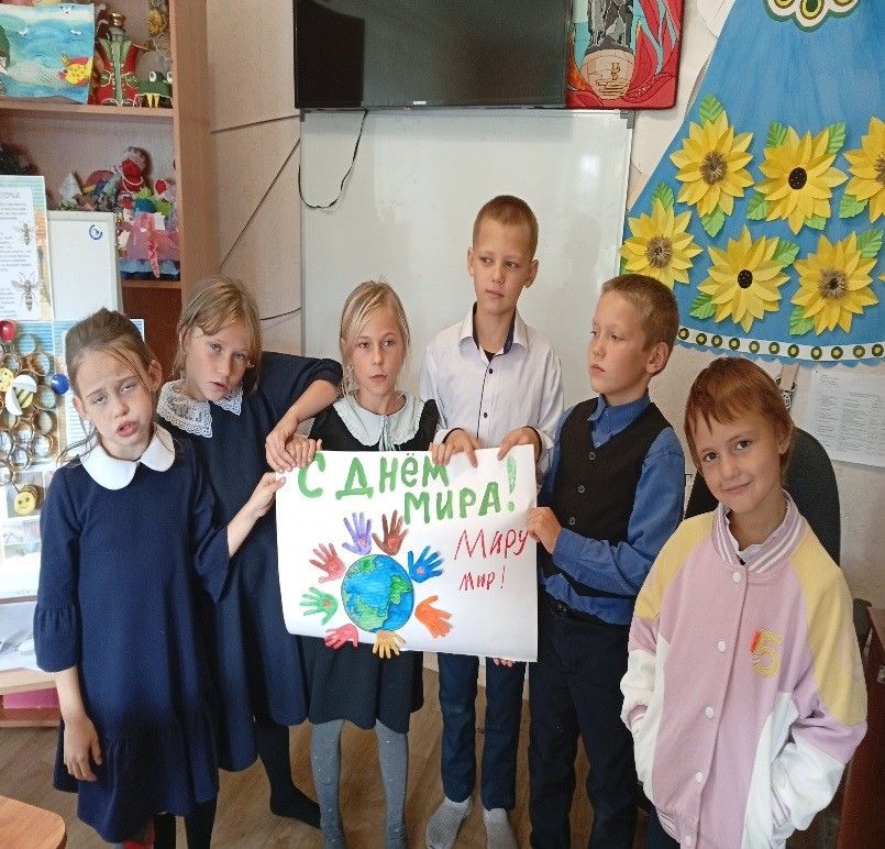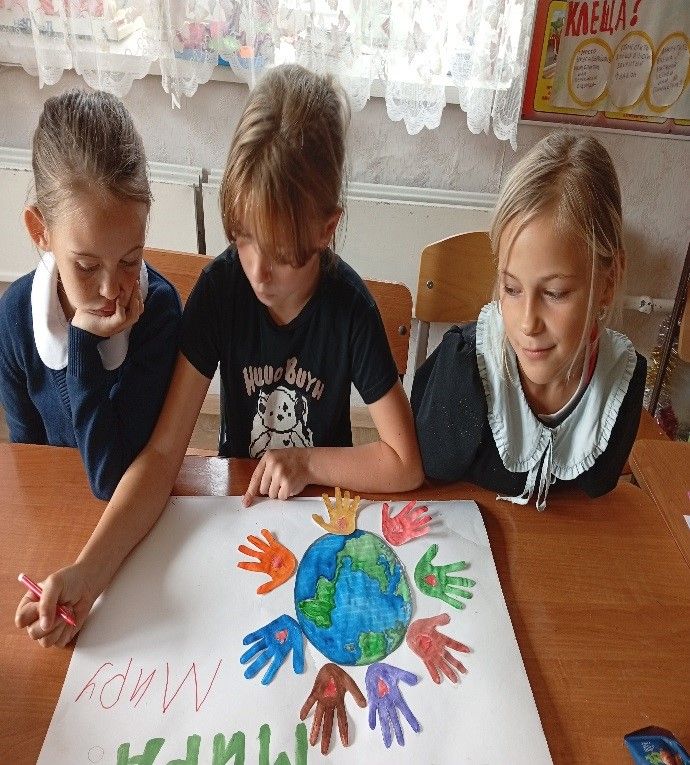 Мы с ребятами нашей службы решили нарисовать плакат «С днём мира!» и рисунки на тему мир.
