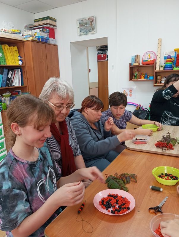 Золотая осень - одно из самых ярких и красочных времён года! А ещё, это – необыкновенно урожайная пора не только на овощи и фрукты, но и на ягоды. И королева среди них – рябина! Рябина – украшение «золотой» поры, необычайно красивое листопадное дерево с округлой и раскидистой кроной и яркими ягодами оранжевого и красного цвета. Наш познавательный мастер-класс направлен на закрепление представлений об осени и рябине в частности, её полезных свойствах. Ребята с интересом смотрели презентацию, отвечали на вопросы. Сюрпризным моментом перед изготовлением бус из рябины оказались ягоды черного цвета. Оказалось, -это тоже рябина, но садовая, черноплодная. Из ягод дети, совместно с родителями, с увлечением делали яркие бусы. Результат превзошел ожидания! Настолько разнообразно и красиво получилось. Все участники получили «море» приятных впечатлений, полезной информации, позитива и радости!