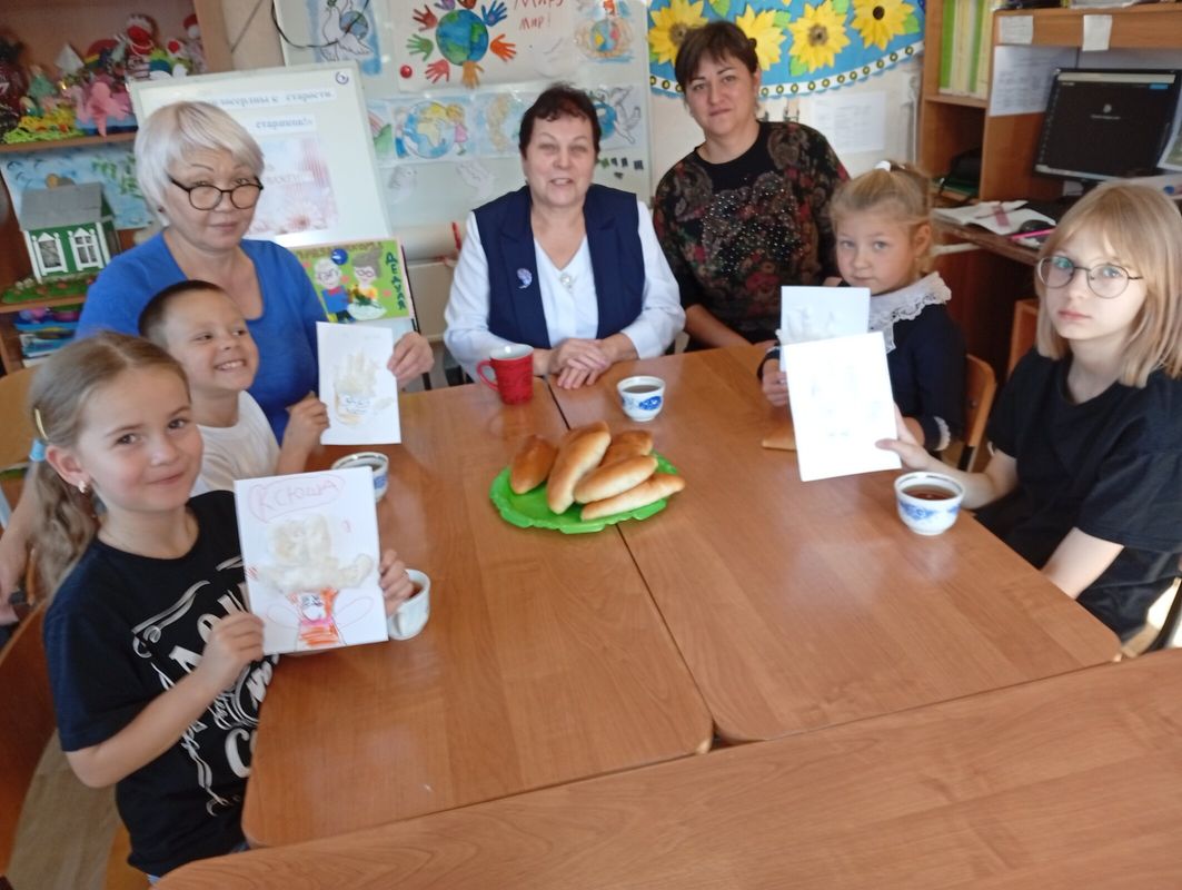 Дети сделали поздравительные открытки для бабушек и дедушек. В конце мероприятия пригласили нашего педагога Валентину Ивановну, поздравили её и пригласили на чай с пирогами.