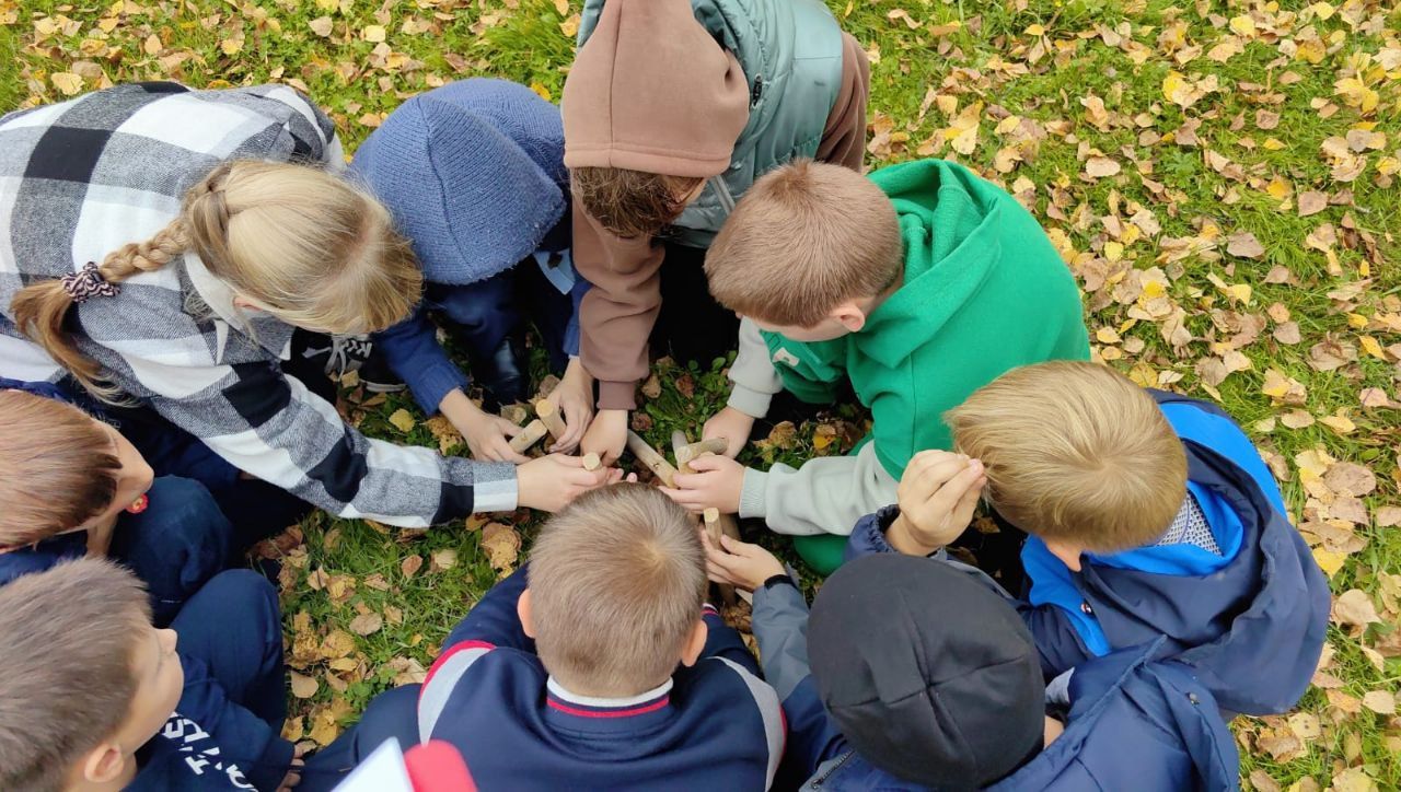 На станции «Исследуем местность» дети определили к каким животным относятся следы, распределили листочки по названиям деревьев, нашли отличия съедобных грибов от несъедобных, отгадали загадки.