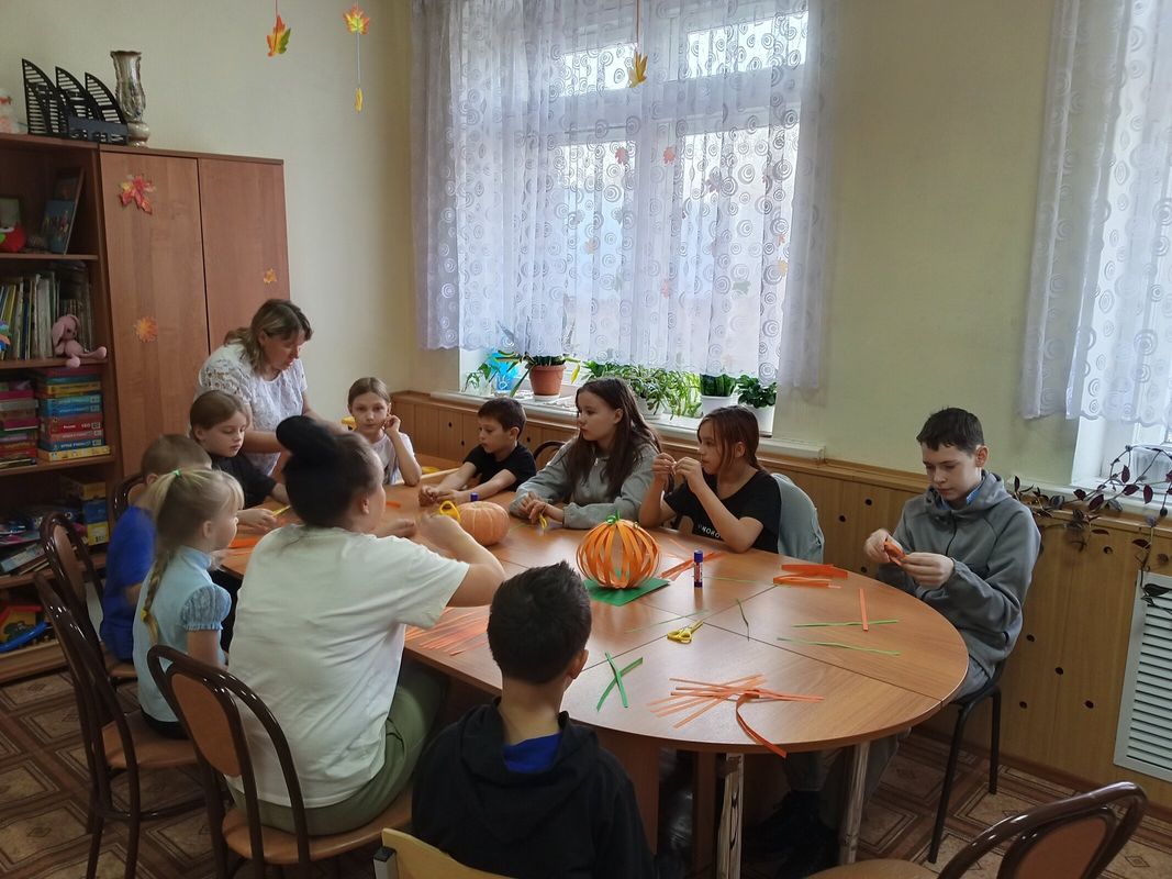 Затем воспитатель Злобина Валентина Евгеньевна для ребят провела мастер-класс по изготовлению тыквы из цветной бумаги.