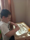 Игра с песком как способ развития и самотерапии ребенка известен с древних времен. Игра с песком — это естественная и доступная для каждого ребенка форма деятельности. Ребенок часто словами не может выразить свои переживания, страхи, и тут ему на помощь приходят игры с песком. Игры в песочнице развивают тактильно-кинестетическую чувствительность и мелкую моторику рук ребенка. Песочное рисование очень полезно гиперактивным детям. Занимаясь таким видом рисования, ребенок успокаивается, освобождается от «лишней» энергии, учится лучше понимать себя. Играя с песком, ребенок учится строить прекрасные песочные «картины», создает различные изображения. А это помогает развитию у ребенка эстетического и художественного восприятия. При этом развивается фантазия, внимание, улучшается координация движений, пространственное восприятие. Воспитанникам очень нравится приходить на занятия с песком. Ребята с интересом и восторгом учатся рисовать песком, строить различные фигуры.